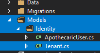 If you look to the bottom of the new Tenant class, you will notice a reference back to our custom IdentityUser object (ApothecaricUser).