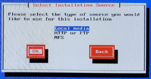 On this step, the installation process will ask what media source you would like to use in order to run the actual installation. I am choosing “Local media” here and the process will continue to run from my USB stick.