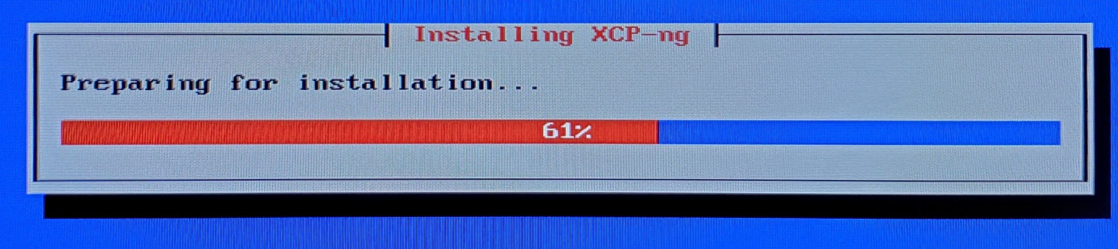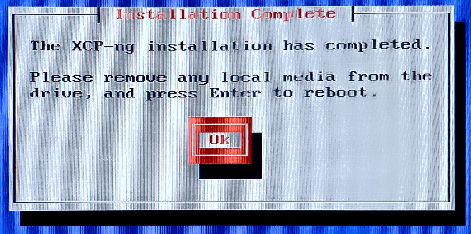 At this point, be a little patient with the reboot. Mine took just a bit longer on the very first boot. If everything went well, you should see the XCP-ng home screen after bootup completes.