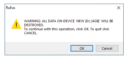 And then select OK to get the process started. This will write over anything that you may have on the media.