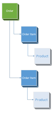 So, what if we wanted to have the Product information on each Order Item? A hierarchy like: