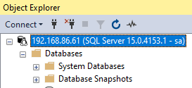 I will fire up SSMS and use the IP address along with the password that we created in our Secret to make the connection.