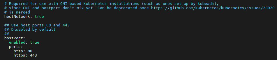 Next, we need to change some configuration settings in order to get the controller to work with our bare metal cluster.