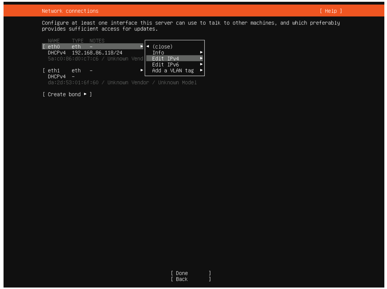 I am going to give my Xen Orchestra server a manual IP address. Select your active network card and then select “Edit IPv4”.